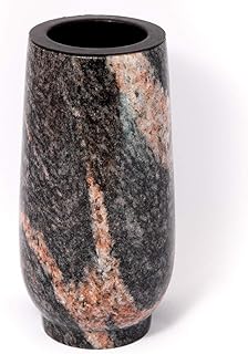 Afterglow Élégant vase funéraire classique en granit véritable de l'Himalaya - Hauteur : 20 cm - Diamètre : 10 cm - Décoration funéraire - Vase en granit résistant aux intempéries et au gel - Avec insert en plastique