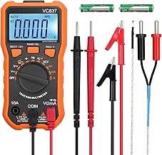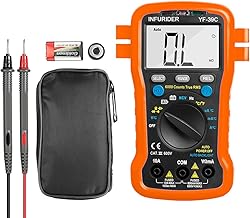 Ce multimètre permet de mesurer des intensités, tensions et résistances des installations et appareillages électriques. Tensions max : 1000 V. Courants max : 10 A. Compact et ultra-solide. Sauvegarde de l'affichage. Auto-sélection de la gamme de mesure. Mode de veille automatique. 91,15€. En achetant ce produit vous gagnez 92 DomoPoints. KKmoon AN82 9999 Multimètre numérique automatique TRMS NCV Testeur pour courant, tension AC/DC et température Résistance à la fréquence Capacité Diode On-Off Test avec lampe torche : Amazon.fr: Bricolage
