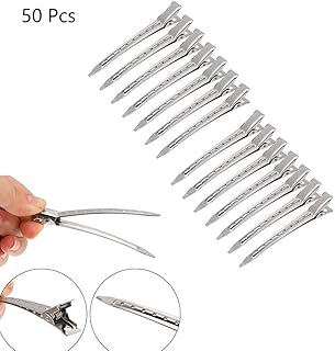Pinces à Cheveux en Métal Argenté, Paquet de 50, Pinces à Cheveux Duck Bill, Pinces à Alligator, Clips de Coupe, Assorties de Pinces à Cheveux pour Femmes, Salon Professionnel Pinces à Cheveux