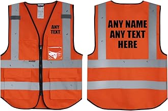 Texte personnalisé Orange Salzmann 3M. Gilet de Sécurité Haute Visibilité Gilet Multi Poches pour Téléphone, Carte d’identité Hi-Vis Gilet 3M Ruban Réfléchissant Haute visibilité