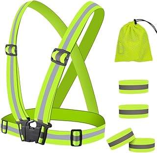 Gilet Réfléchissant, Haute Visibilité Gilet de Sécurité Réfléchissant Réglable Elastique Gilet de Sécurité Harnais, Ajustement pour Jogging, Vélo, Marche, Moto + 4PCS Brassards Réfléchissants Bande