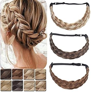 Braided Hair Extensions Headband Braid Hairband Elastic Stretch Wide Chunky Plaited Hairband Costume Hairpiece For Women Girls Small Size 3 Strands - Light Brown