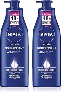 NIVEA Lait Crème Nourrissant 48h Peaux Sèches à Extra Sèches (2 x 250 ml), Crème hydratante avec Concentré de Soin & Huile d’Amande Douce, Lait corps nutrition intense