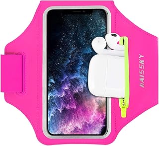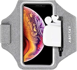 HAISSKY Brassard de Sport avec Poche Airpods, Brassard Sport pour iPhone 12 11 Pro XR XS X 8 7 6, Brassard Telephone Smartphone Running Brassard pour Jogging Cyclisme Randonnée