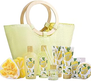 Green Canyon Spa Coffret Cadeau Femme, 10 PCS Coffet De Bain au Parfum de Citron, Comprend Gel Douche, Sels De Bain, Diffuseur de Parfum, Idée Cadeau pour Noël et l’Anniversaire