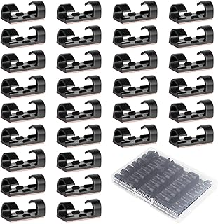 URAQT 30Pcs Clips Câbles Adhésives, Rangements de câbles, Premium Adhésif 3M Serre-Câble, Câbles de Charge, Câbles Audio, Supprot Fils Electriques pour TV/Chargeur/Voiture/Bureau (Noir)