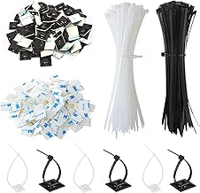 Nsiwem Cable Ties Serre Fil Set Collier Serrage Collier de Fixation Attache Cable Adhesif Supports de Base de Serre-Câbles, avec Noir Attache-câbles Serre Cables Zip Ties, 200 pièces