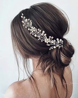 Unicra Accessoire pour cheveux de mariée en forme de vigne avec cristaux argentés et perles pour femmes et filles