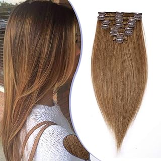 Rajout Cheveux Clip Naturel Extension Cheveux Naturel Vrai Cheveux Humain Lisse - 8 Bandes pour Cheveux Fin (#06 NOISETTE, 55cm-75g)