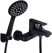 ONLT Mitigeur Douche avec Douchette Robinet douche Noir Robinet baignoire Montage Mural avec Support et Flexible douche 150 cm pour Salle de Bain