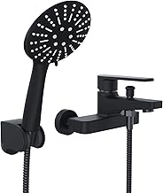 Mainen Mitigeur Douche avec Douchette Robinet douche Noir Robinet baignoire Montage Mural avec Support et Flexible douche 150 cm pour Salle de Bain